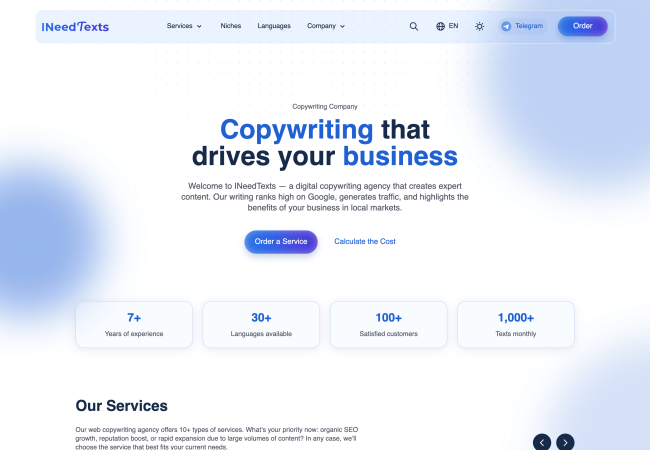 Сайт на WordPress — Copywriting Agency
